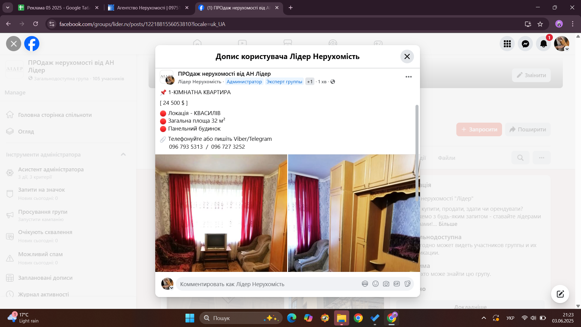 | https://www.facebook.com/groups/realestrivne/permalink/1759547621143527/?sale_post_id=1759547621143527 |