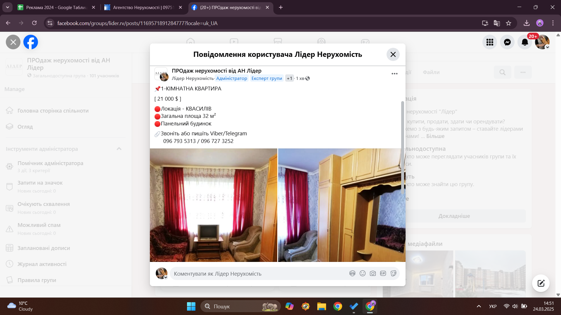 | https://www.facebook.com/groups/realestrivne/permalink/1794124344352521/?sale_post_id=1794124344352521&mibextid=oMANbw |